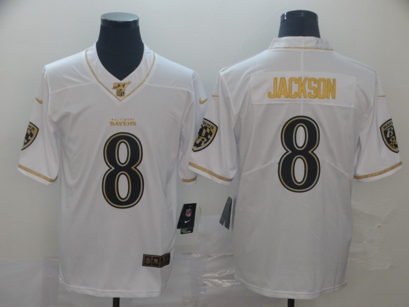 Baltimore Ravens 8# Jackson White Golden NFL Retro Jerseys 113252