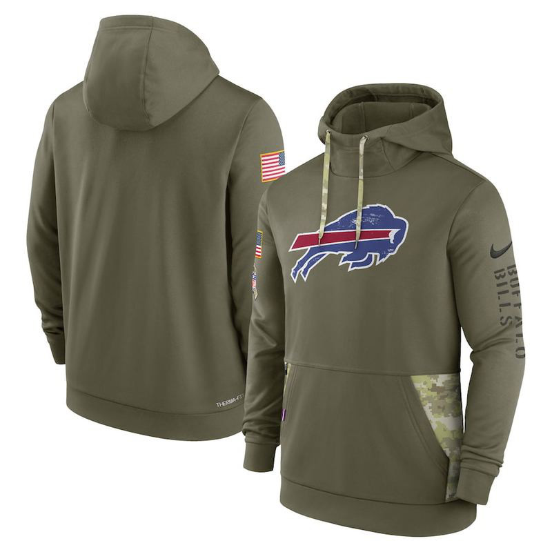 Buffalo Bills NFL Olive Salute to Service Sideline Therma Pullover Hoodies 124549