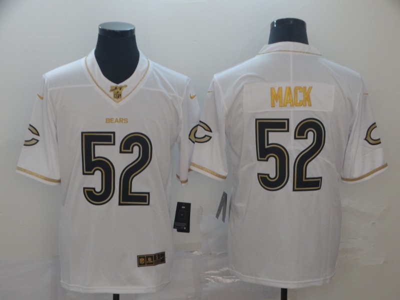 Chicago Bears 52# Mack White Golden NFL Retro Jerseys 113377