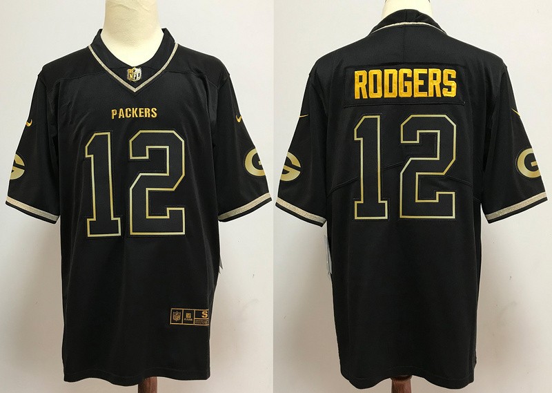 Green Bay Packers 12# Rodgers Black Gold NFL Jerseys 113632