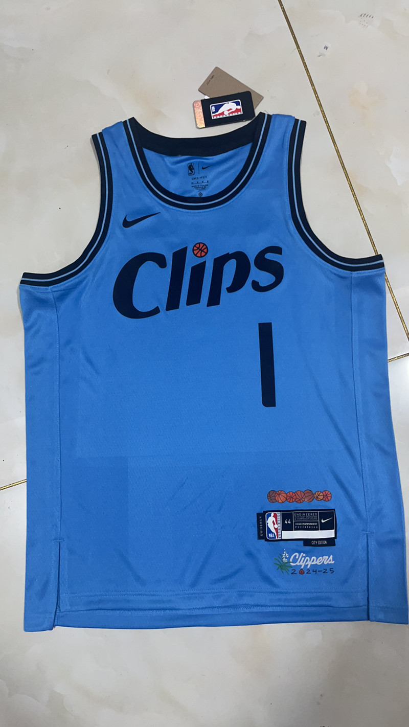 Los Angeles Clippers #1 Harden 24-25 NBA City Blue Heat Pressed Jersey 125452