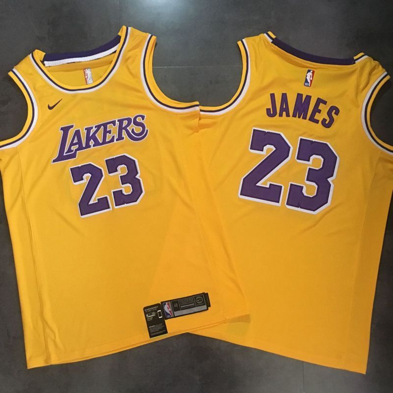 Los Angeles Lakers 23# James New Season Yellow Vintage NBA Dense Embroidery Jersey 97975