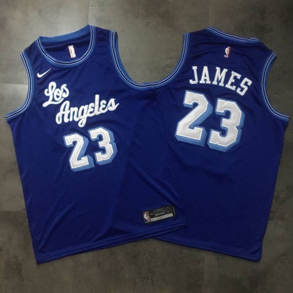 Los AngelesLakers 23# James Retro Cursive Blue NBA Densely Embroideried 112523