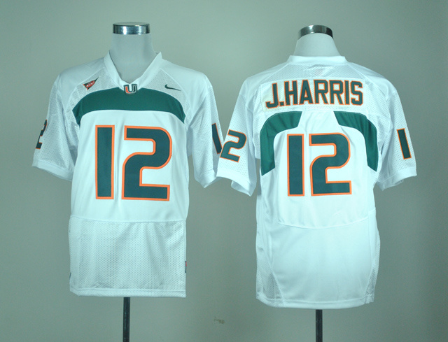 Miami Hurricanes Jacory Harris #12 White NCAA Football Jersey