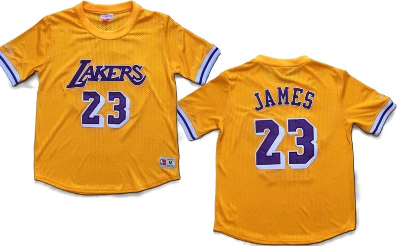 Mitchell & Ness Los Angeles Lakers 23# James Yellow Mesh Short Sleeves NBA Densely Embroideried 112529