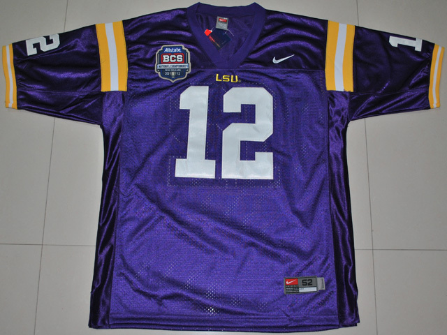 Nike LSU Tigers Jarrett Lee 12 Purple 2012 BCS Patch College Football Jersey