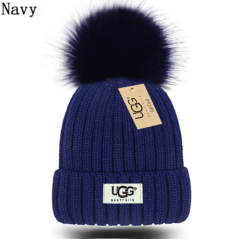 U99 Faux Fox Fur Ball Knitted Beanie Hats 110706