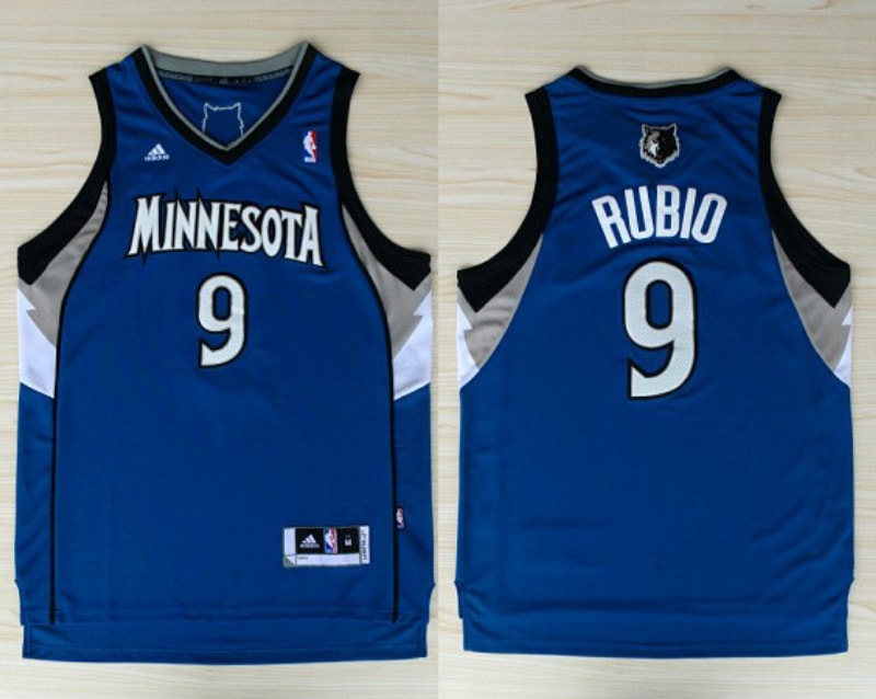 Vintage NBA MInnesota Timberwolves #9 Ricky Rubio Revolution 30 Swingman Road(Blue) Adidas Jersey 98323