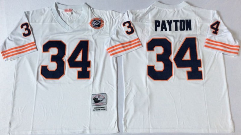 Vintage NFL Chicago Bears White #34 PAYTON Retro Jersey 98941