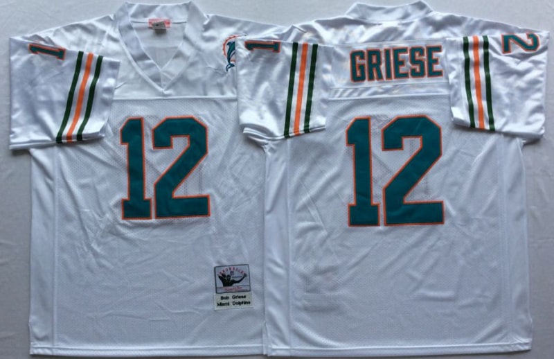 Vintage NFL Miami Dolphins White #12 GRIESE Retro Jersey 99036