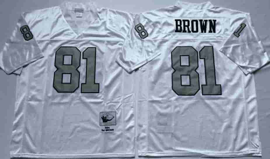 Vintage NFL Oakland Raiders White #81 BROWN TUYA Retro Jersey 99112