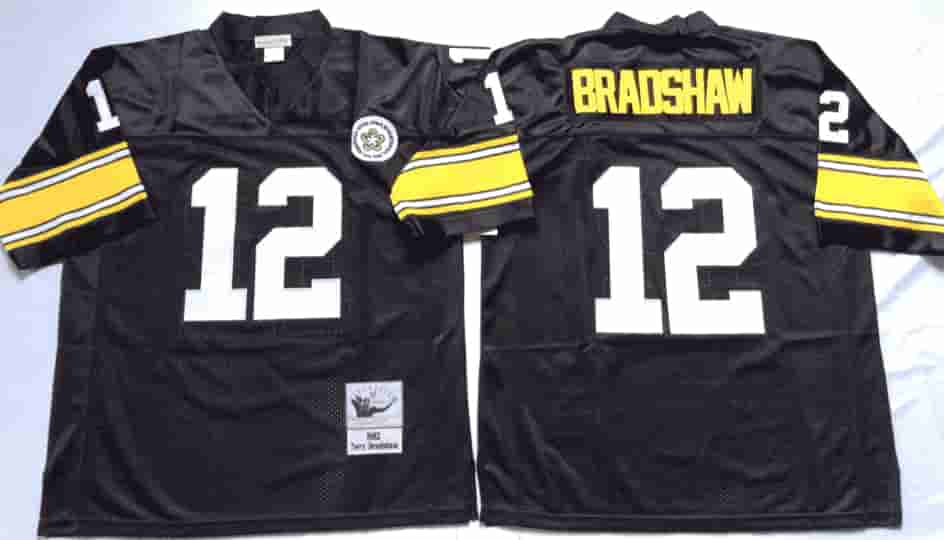 Vintage NFL Pittsburgh Steelers Black #12 BRADSHAW TUYA Retro Jersey 99143