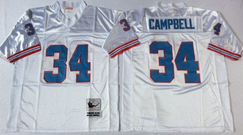 Vintage NFL Tennessee Oilers White #34 CAMPBELL Retro Jersey 99268